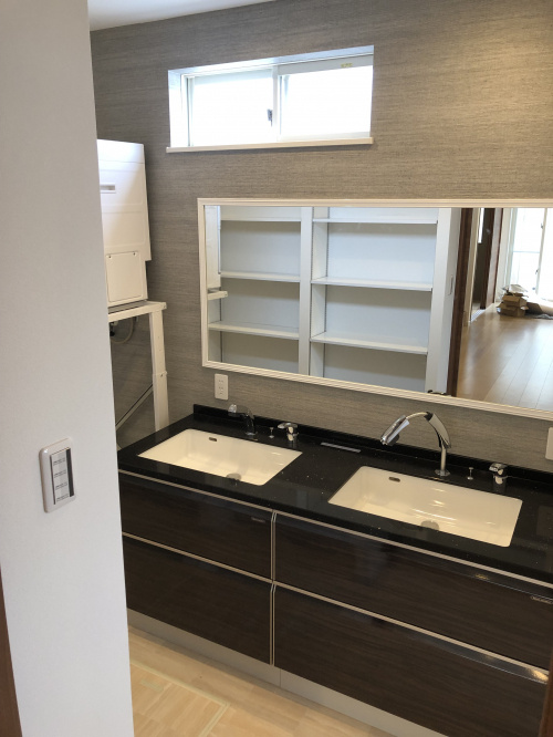 洗面ボウルを2ケ所付けたので朝の混雑も無く贅沢使いにしました(*^^*)